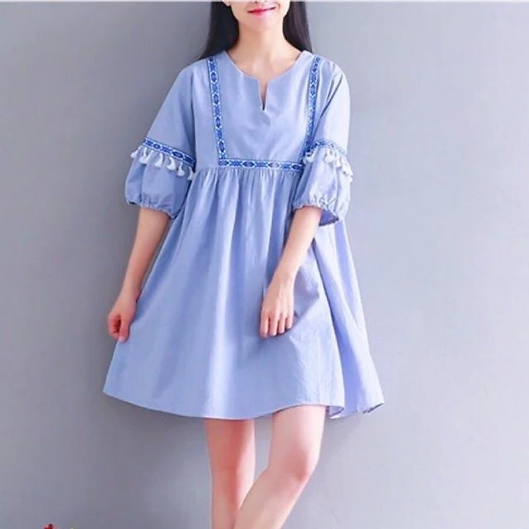 Đầm bầu váy bầu babydoll tua rua cho mẹ trước và sau sinh