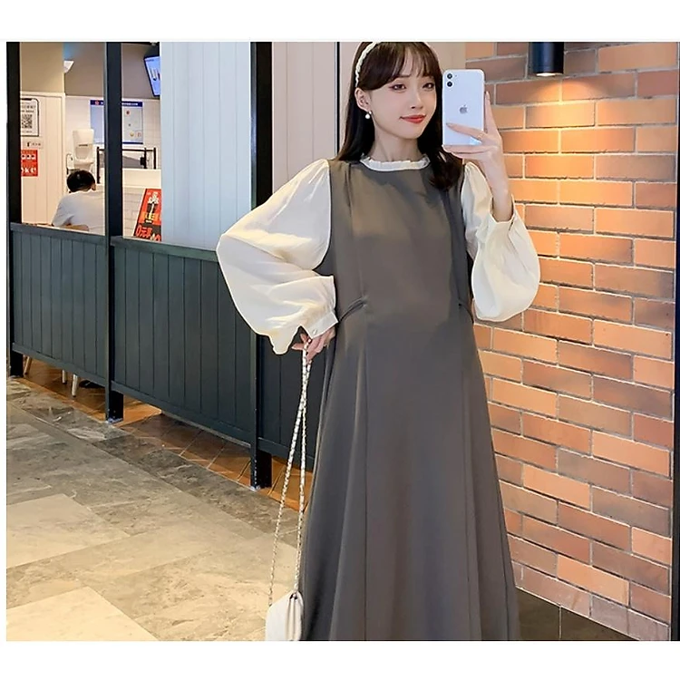 ĐẦM BẦU VÁY BẦU CÔNG SỞ DÁNG DÀI,(phối tay dài vải mỏng không nóng )