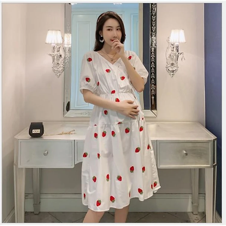 ĐẦM BẦU VÁY BẦU CÔNG SỞ KẾT TRÁI DÂU TÂY DỄ THƯƠNG
