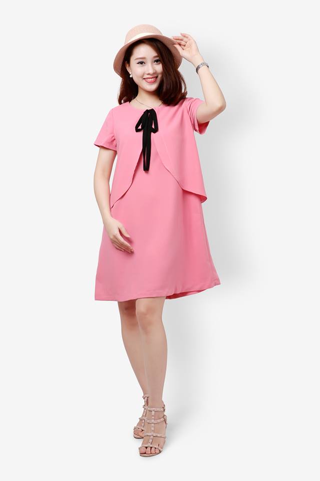 Thiết kế cánh tiên phần áo trước kết hợp nơ đen nổi bật tạo phong cách trẻ trung, màu sắc hồng dịu mắt dễ dàng phối đồ, kết hợp với 1 đôi giày xinh xắn sẽ giúp các mẹ trở nên thật xinh đẹp.