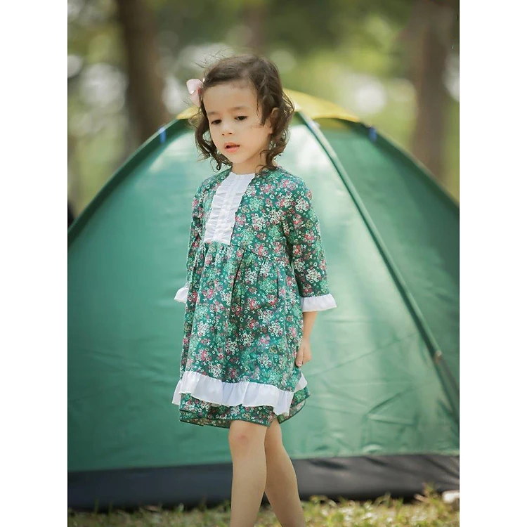 Váy Cinderella cho bé gái Haki - Hoa xanh