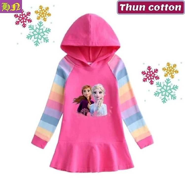 Đầm bé gái Elsa tay dài từ 10-42kg- đầm xòe có nón thun cotton thấm hút mồ hôi - Hương Nhiên