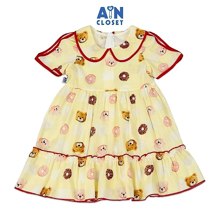 Đầm bé gái họa tiết Gấu Donut Vàng cotton - AICDBGOPFCRA - AIN Closet