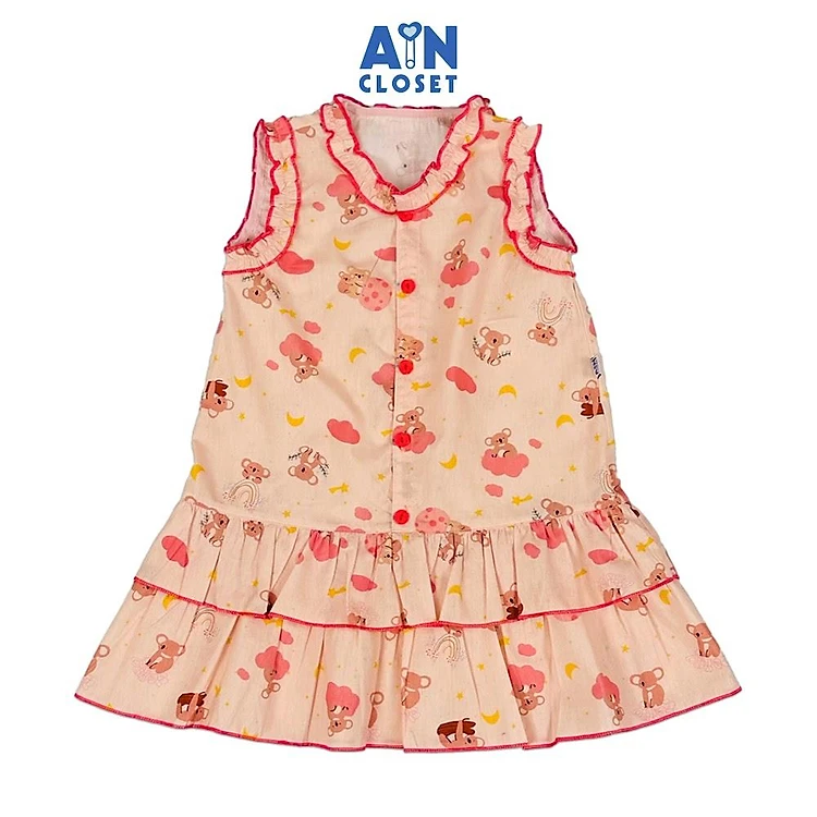 Đầm bé gái họa tiết Gấu Koala Hồng cotton - AICDBGEI1V6L - AIN Closet