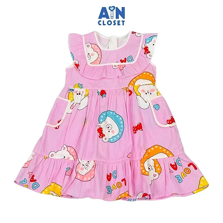 Đầm bé gái họa tiết Gấu Trắng nền hồng cotton - AICDBG3Q6CXR - AIN Closet