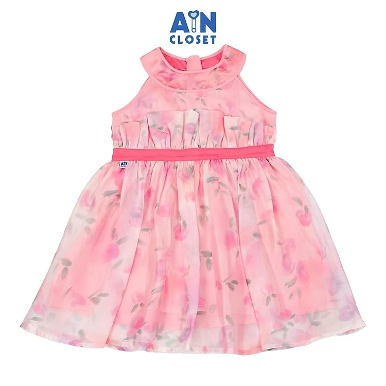 Đầm bé gái họa tiết Hoa Cổ Yếm Hồng tơ silk - AICDBG4CQCRY - AIN Closet