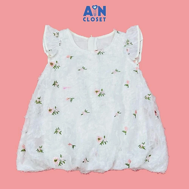 Đầm bé gái hoạ tiết Hoa Hồng Voan thêu trắng - AICDBGEXJWVG - AIN Closet