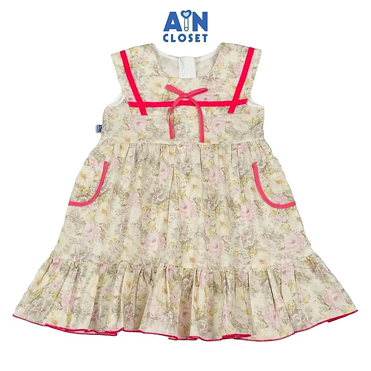 Đầm bé gái họa tiết hoa Hồng Xám Tezza cotton - AICDBGVZPAEM - AIN Closet
