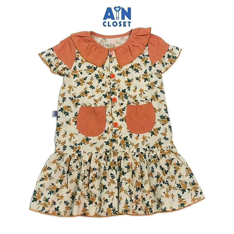 Đầm bé gái họa tiết Hoa Lan cam cotton linen - AICDBGRGTBCI - AIN Closet
