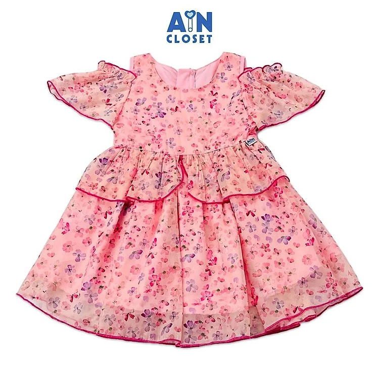 Đầm bé gái họa tiết hoa Ngọc Hân hồng tơ trễ vai - AICDBGS0IRBO - AIN Closet