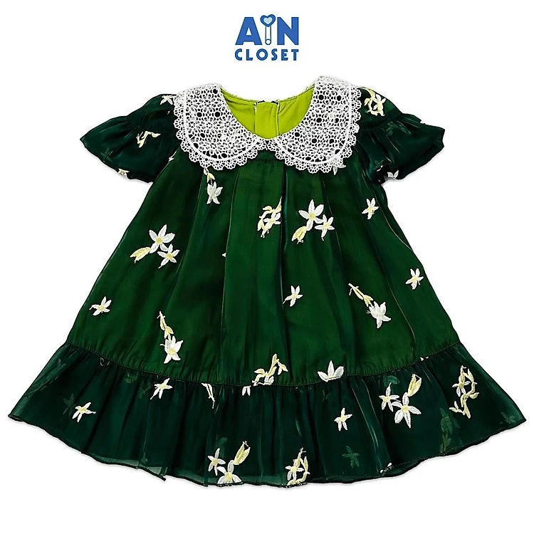 Đầm bé gái họa tiết hoa Nguyệt Quế xanh organza - AICDMEAZJDWB - AIN Closet