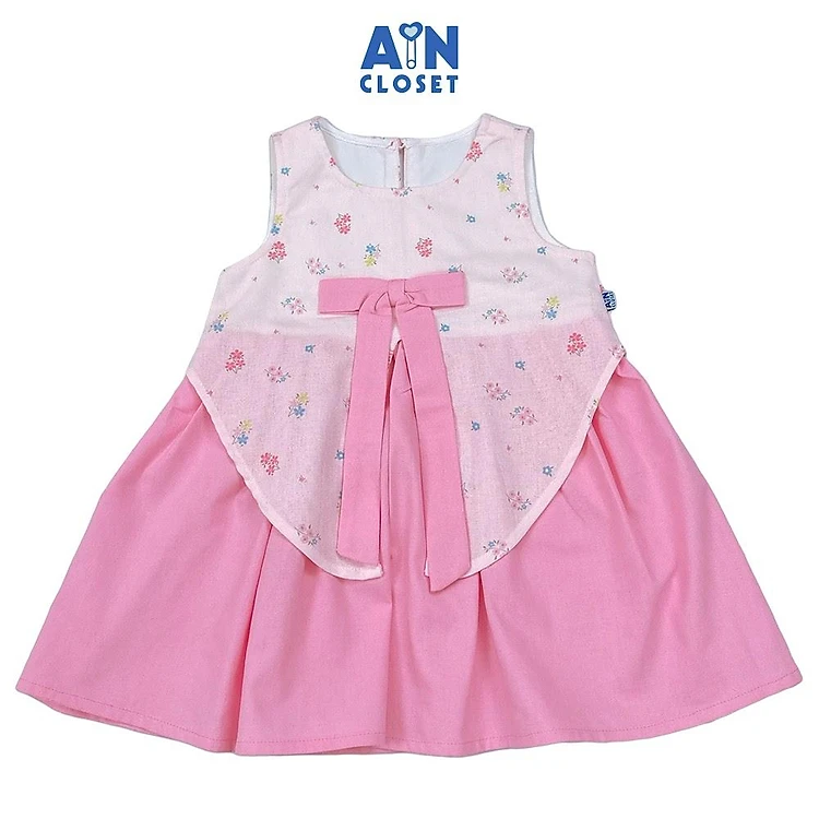 Đầm bé gái hoạ tiết Hoa Nơ Nhí Hồng Linen - AICDBGYFSK8Q - AIN Closet