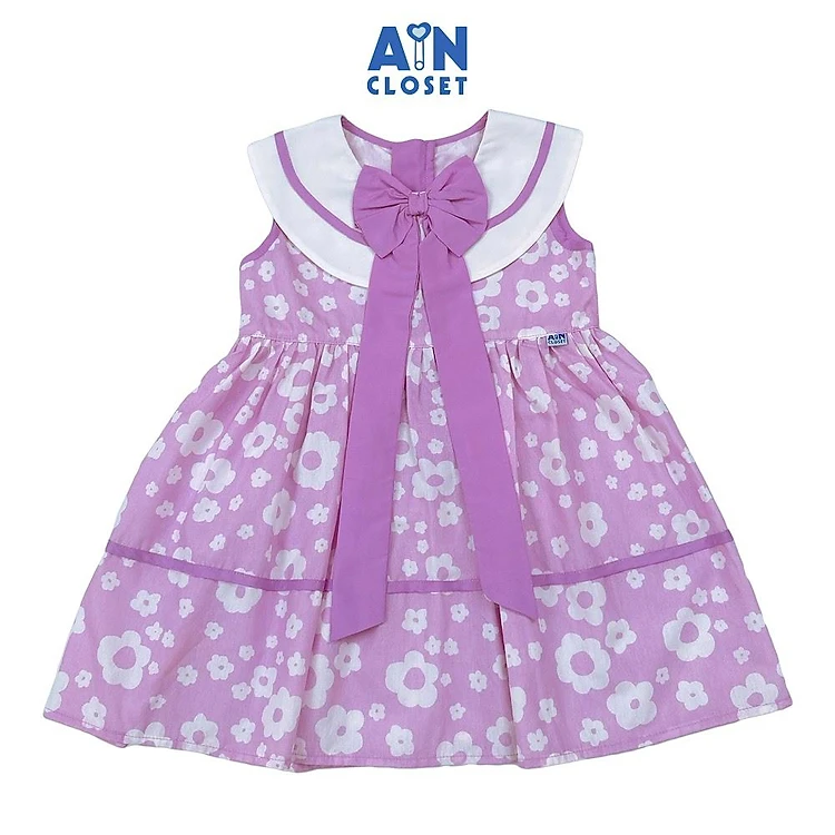 Đầm bé gái hoạ tiết Hoa Nơ Tím Cotton - AICDBGN65KT5 - AIN Closet
