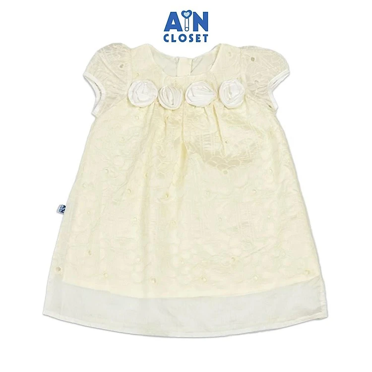 Đầm bé gái họa tiết Hồng Mao Lương Trắng Tơ Thêu - AICDBGRFNOOA - AIN Closet