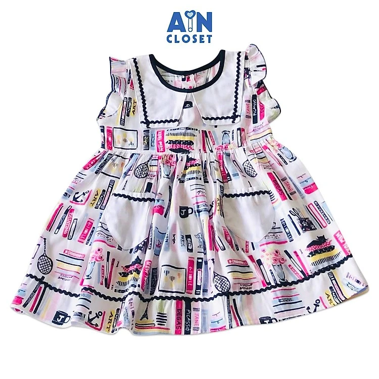 Đầm bé gái Họa tiết Mỏ neo xanh cổ thủy thủ cotton - AICDBGTOP26R - AIN Closet