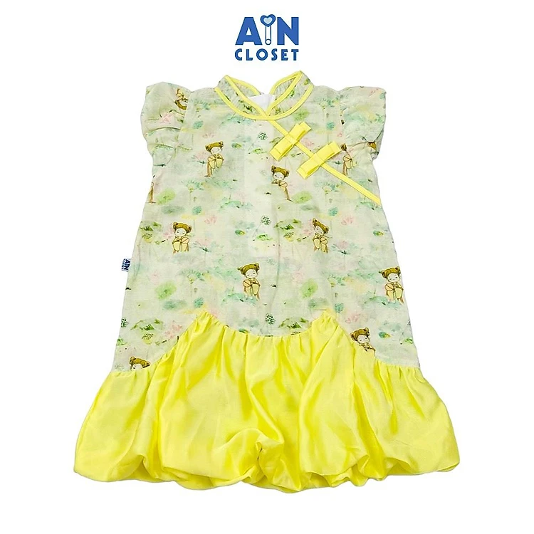 Đầm bé gái hoạ tiết Nàng Tiên Vàng Cotton phong cách Trung Hoa - AICDBGSPKCF1 - AIN Closet