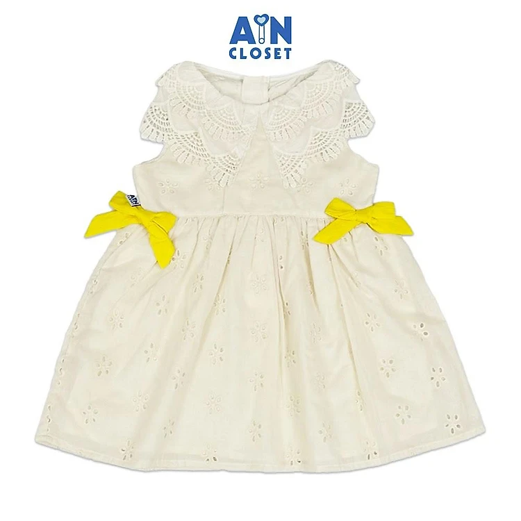 Đầm bé gái hoạ tiết Nơ Ren Vàng Cotton thêu - AICDBG3B9FSN - AIN Closet