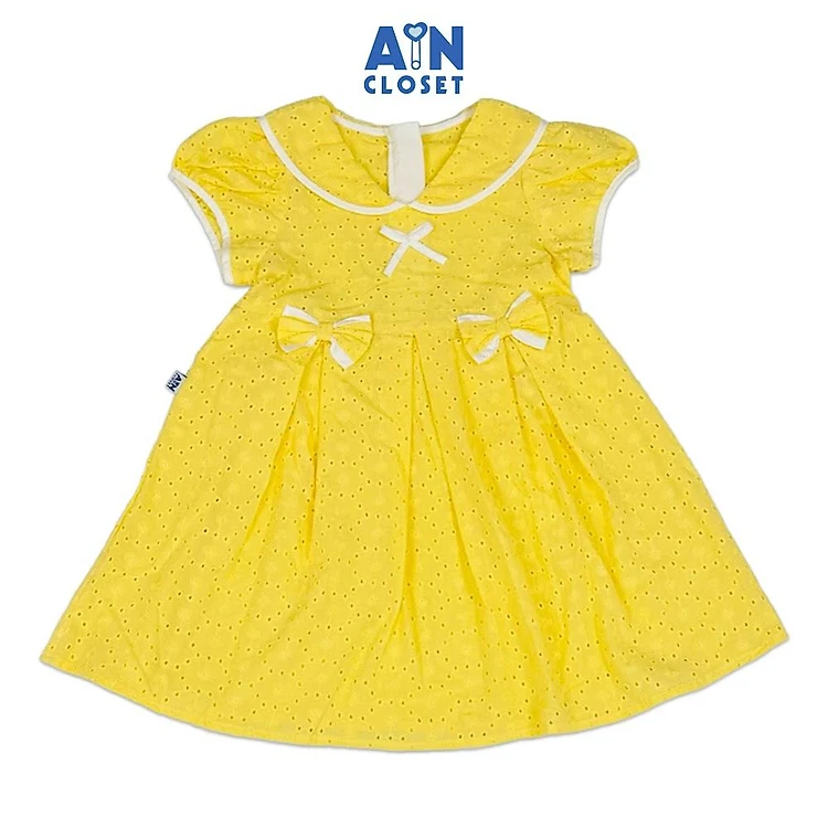 Đầm bé gái hoạ tiết Nơ Thêu Vàng Cotton - AICDBG5JYRVS - AIN Closet