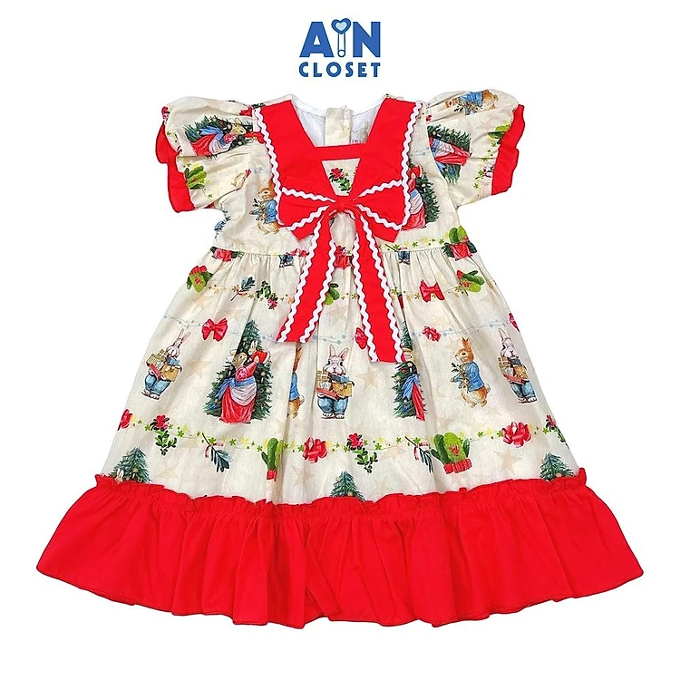 Đầm bé gái hoạ tiết Thỏ Giáng Sinh Cotton - AICDBG8LBAL5 - AIN Closet