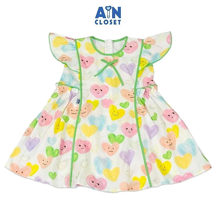 Đầm bé gái họa tiết Trái Tim Viền Xanh cotton - AICDBGBTKN2D - AIN Closet