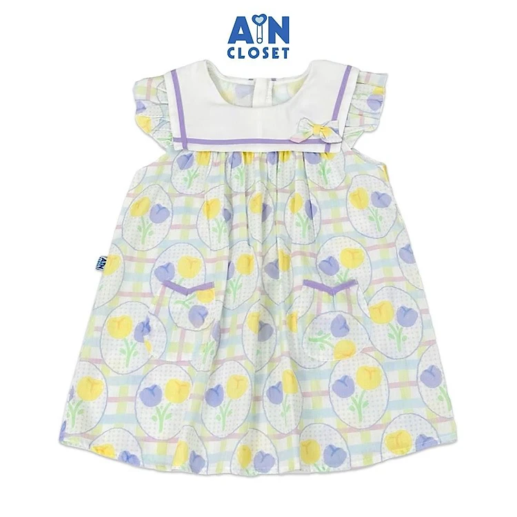 Đầm bé gái họa tiết Tulip Caro Tím cotton - AICDBGZHJUDU - AIN Closet