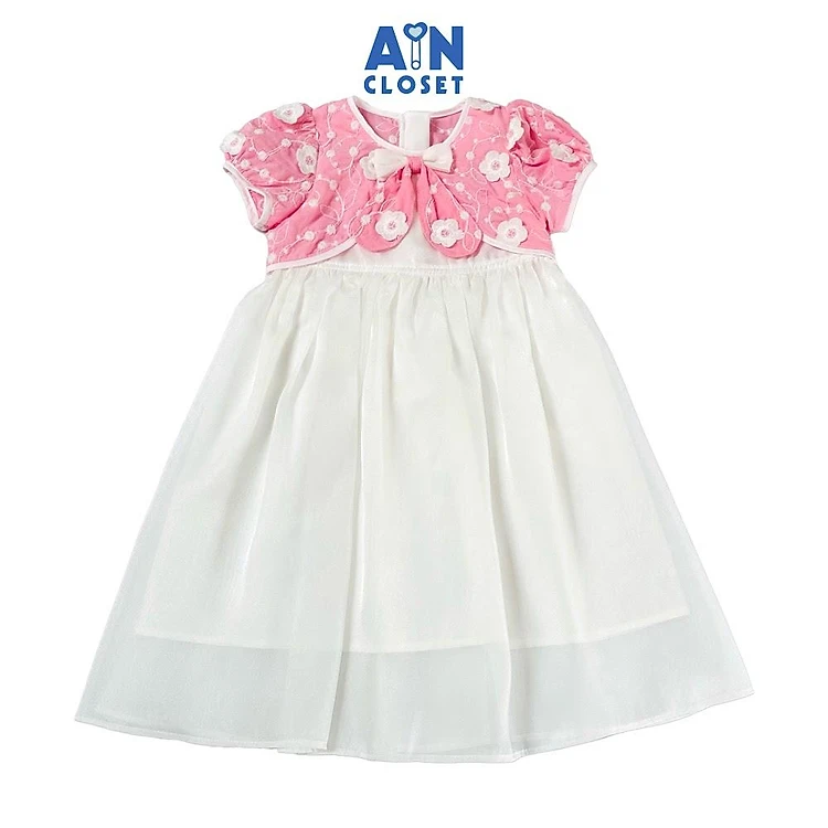 Đầm bé gái họa tiết Tuyết Mai Hồng Trắng cotton - AICDBGZ0EBLS - AIN Closet