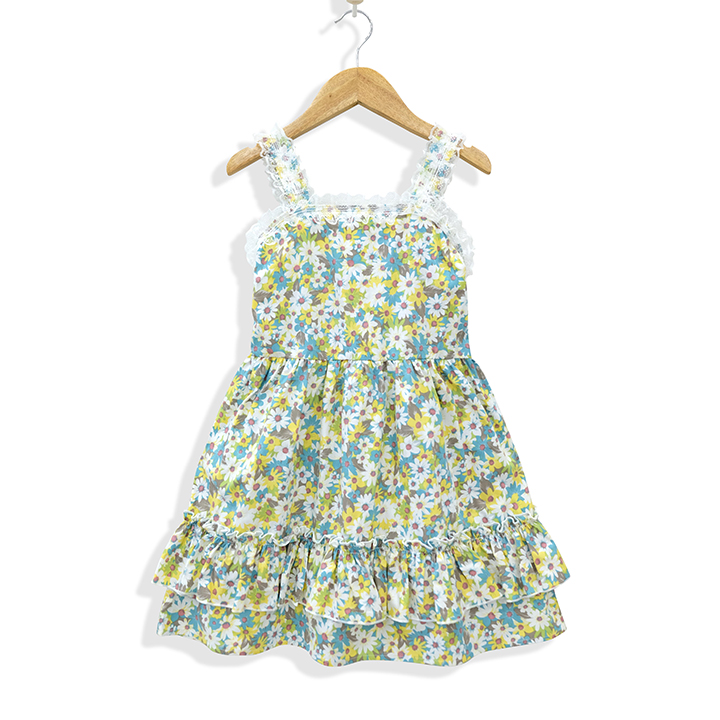 Tên sản phẩm : Đầm bé gái Kate hoa cúc sát nách 2 tầng tùng xòe