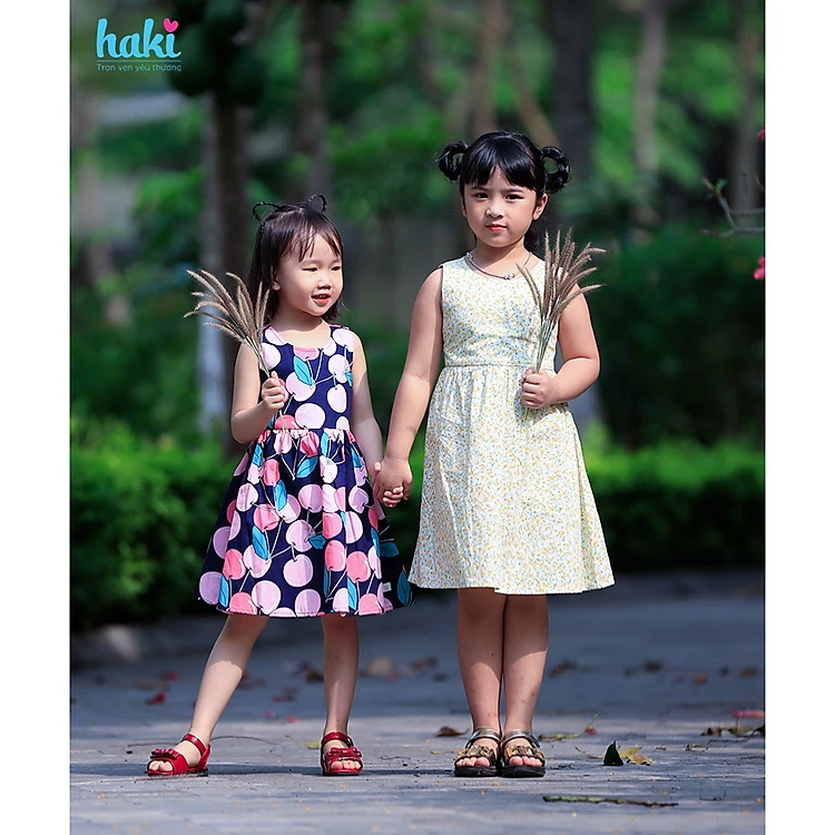 Đầm bé gái khoét lưng, nhún eo xinh yêu HK515, váy hè cho bé gái chất liệu Thô cao cấp xuất khẩu HAKI (10-27kg)