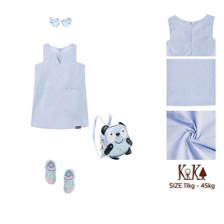 Đầm Bé Gái Kika Dáng Xuông Nách Vuông K083 - Xanh