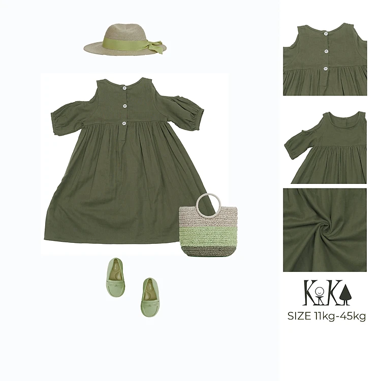 Đầm Bé Gái Kika Hở Vai Xanh Bộ Đội K109