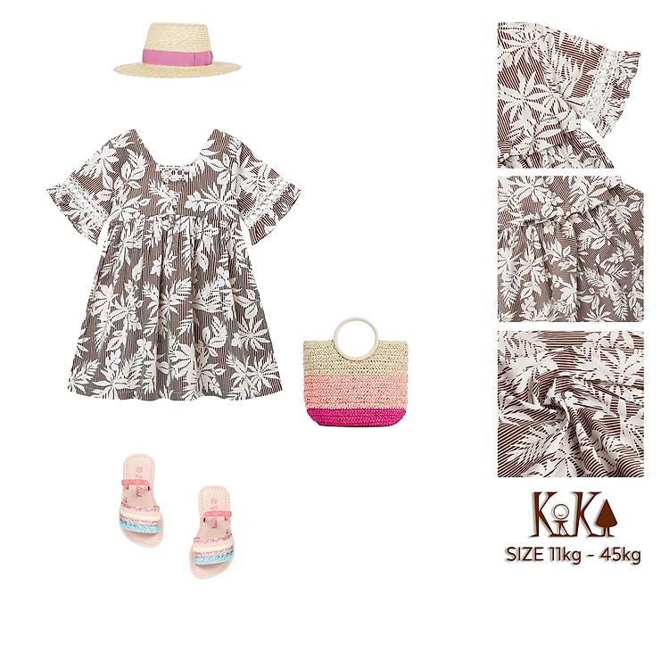 Đầm Bé Gái KIKA Lá Phong Ren Tay K085 - Nâu