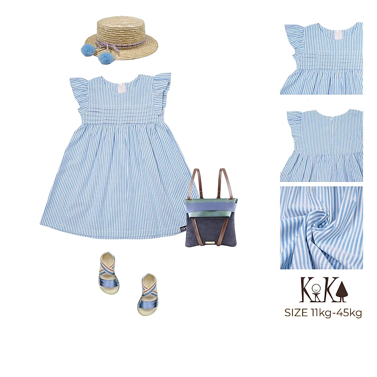 Đầm Bé Gái Kika Mầu Xanh Kẻ Gấp Ly Ngực K111