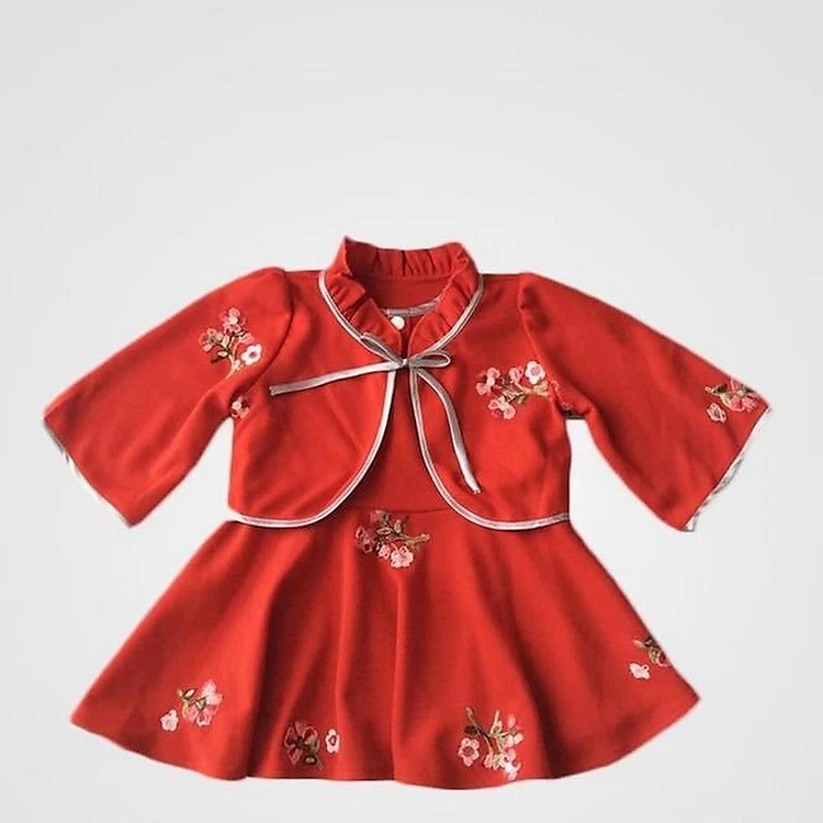 Đầm bé gái Len đỏ thêu hoa - AICDBGGSLSHH - AIN Closet