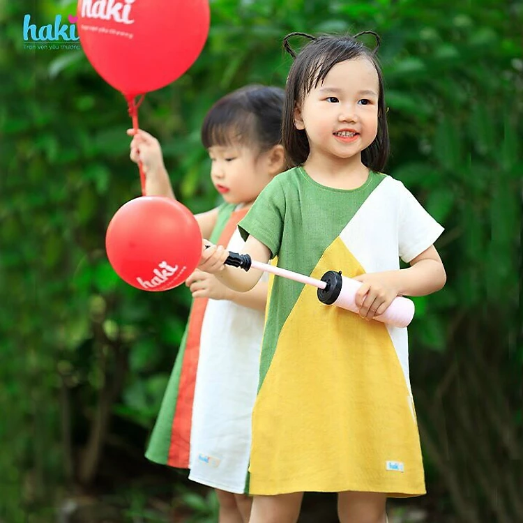 Đầm bé gái linen cộc tay phối tam giác Haki