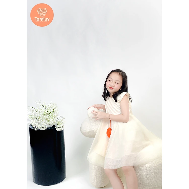 Đầm Bé Gái Tamiuy Tùng Xoè 360 Độ ,Váy Dự Tiệc Trắng Kem Thiết Kế Tiểu Thư