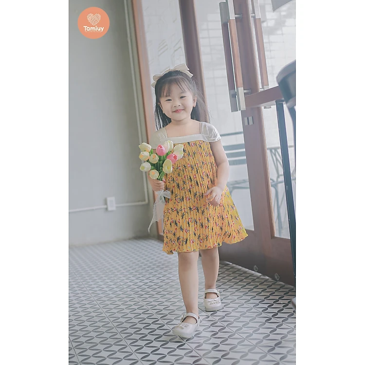 Đầm Bé Gái Tamiuy Voan Dập Ly, Họa Tiết Hoa Nhí Dễ Thương