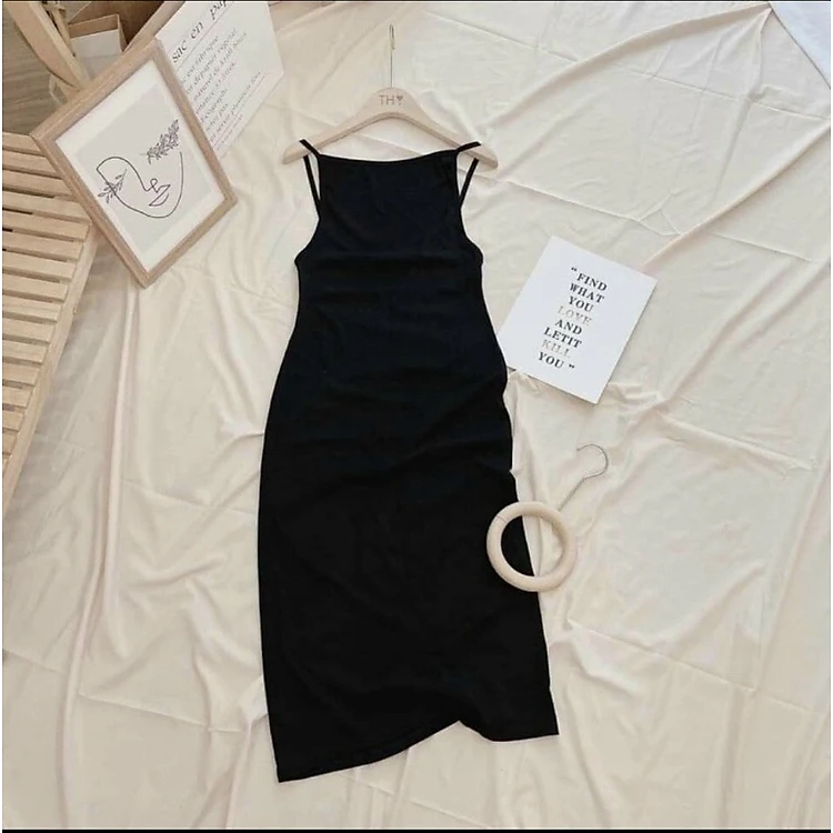 Đầm body 2 dây, váy nữ body hở lưng màu đen quyến rũ