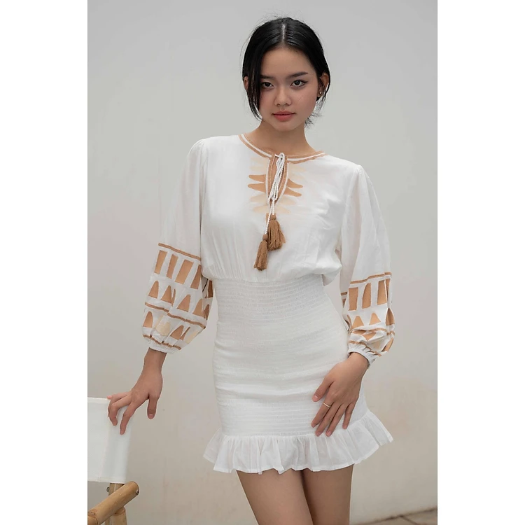 Đầm Boho Thêu Cotton Cao Cấp Luna Llena