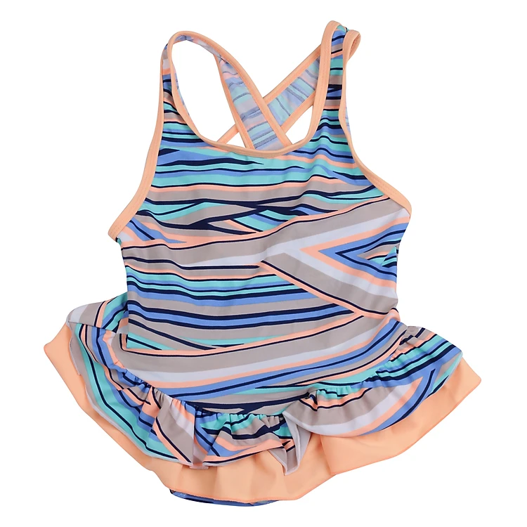Sản phẩm có thiết kế dễ thương, thu hút nhờ họa tiết sọc ngang được phối màu hài hòa, tinh tế. Phần lưng áo thiết kế 2 dây chéo tạo điểm nhấn, thể hiện sự năng động, đáng yêu ở bé khi mặc. Đồng thời cũng giúp bé tự tin và yêu thích bơi lội hơn.