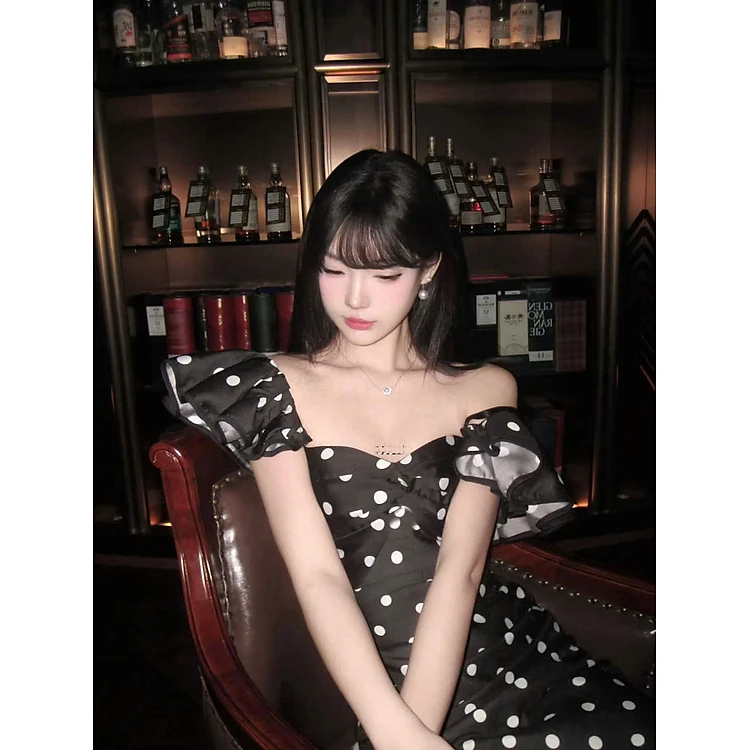 Đầm chấm bi trễ vai phong cách nhẹ nhàng