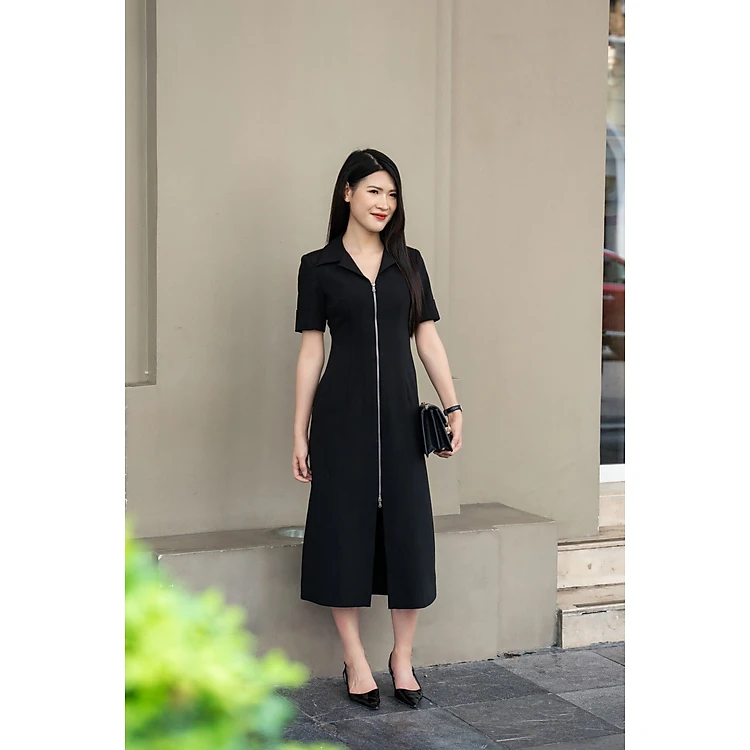 Đầm chữ A kéo khóa kim loại thân trước Phelan thiết kế cao cấp WHITE CHIC