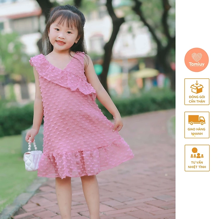 Đầm Cổ Tim Bèo Lệch Vai Tamiuy Chất Vải Cotton Cao Cấp Đáng Yêu Xinh Xắn Cho Bé Từ 1-10 Tuổi