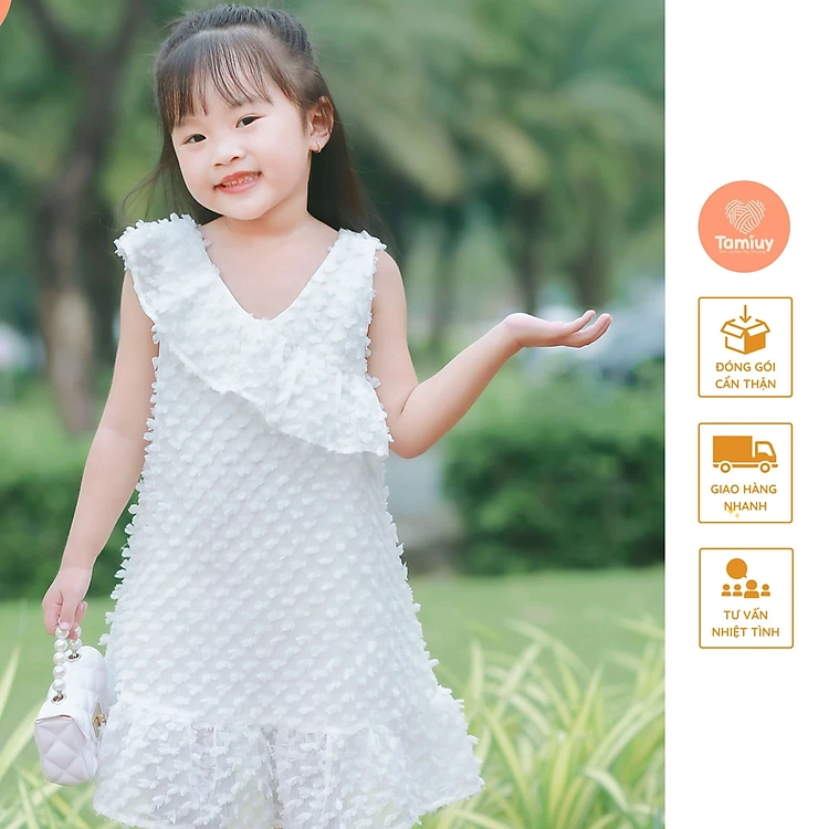 Đầm Cổ Tim Bèo Lệch Vai Tamiuy Chất Vải Cotton Cao Cấp Đáng Yêu Xinh Xắn Cho Bé Từ 1-10 Tuổi