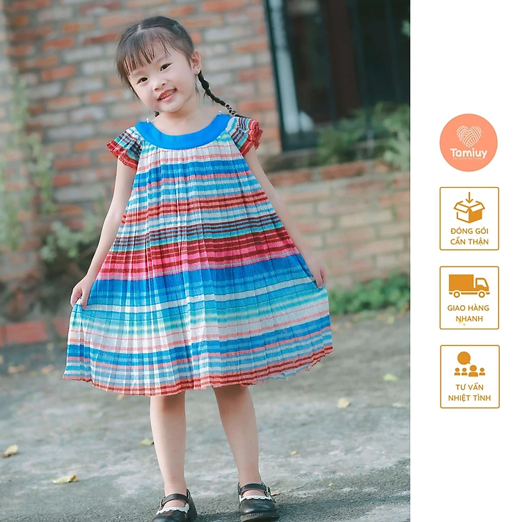 Đầm Cổ Yếm Dập Ly Tamiuy Chất Vải Voan Mềm Mại Cùng Họa Tiết Nổi Bật Xinh Xắn Dễ Thương Cho Các Bé Gái