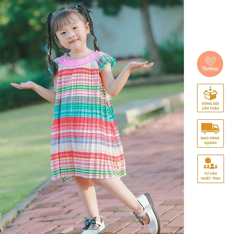 Đầm Cổ Yếm Dập Ly Tamiuy Chất Vải Voan Mềm Mại Cùng Họa Tiết Nổi Bật Xinh Xắn Dễ Thương Cho Các Bé Gái