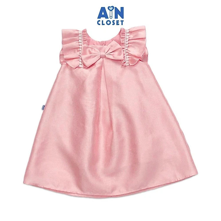 Đầm công chúa bé gái Họa tiết Nơ hồng tafta ánh nhủ - AICDBGZMDASM - AIN Closet
