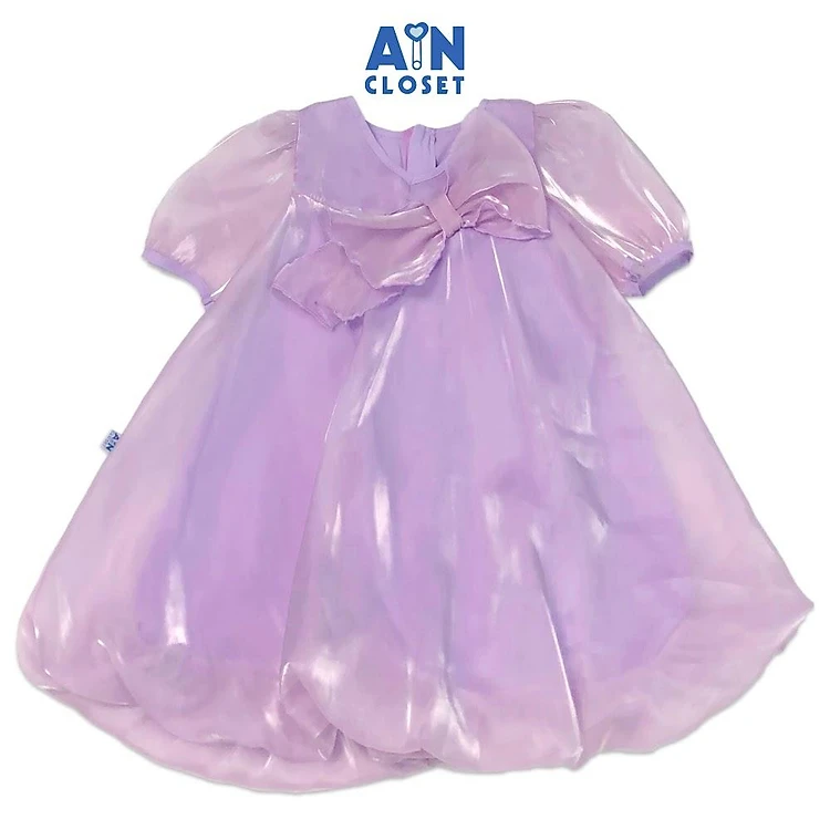 Đầm công chúa bé gái Nơ tím tay lỡ organza - AICDBGEVHKZH - AIN Closet