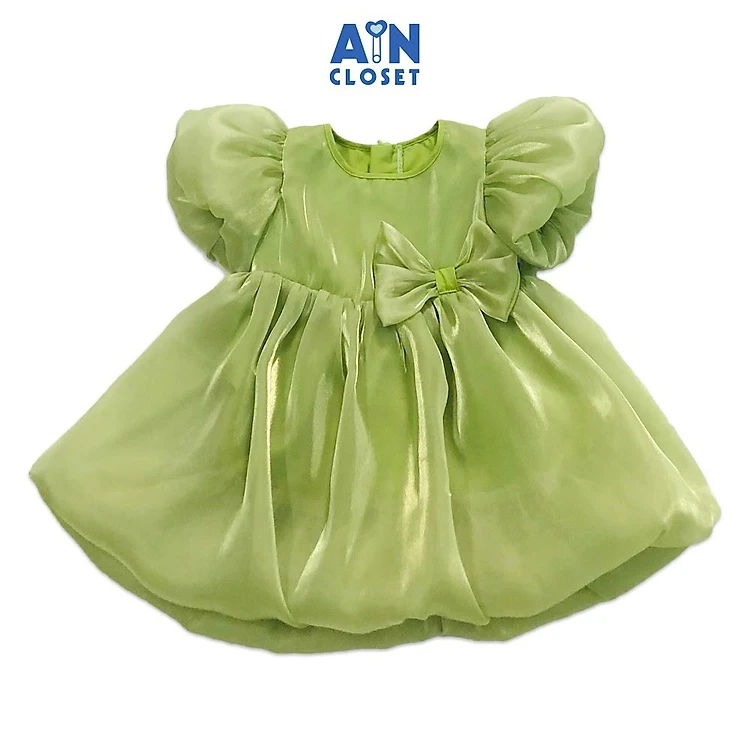 Đầm công chúa bé gái Nơ xanh tay phồng organza - AICDBGO6KIXN - AIN Closet