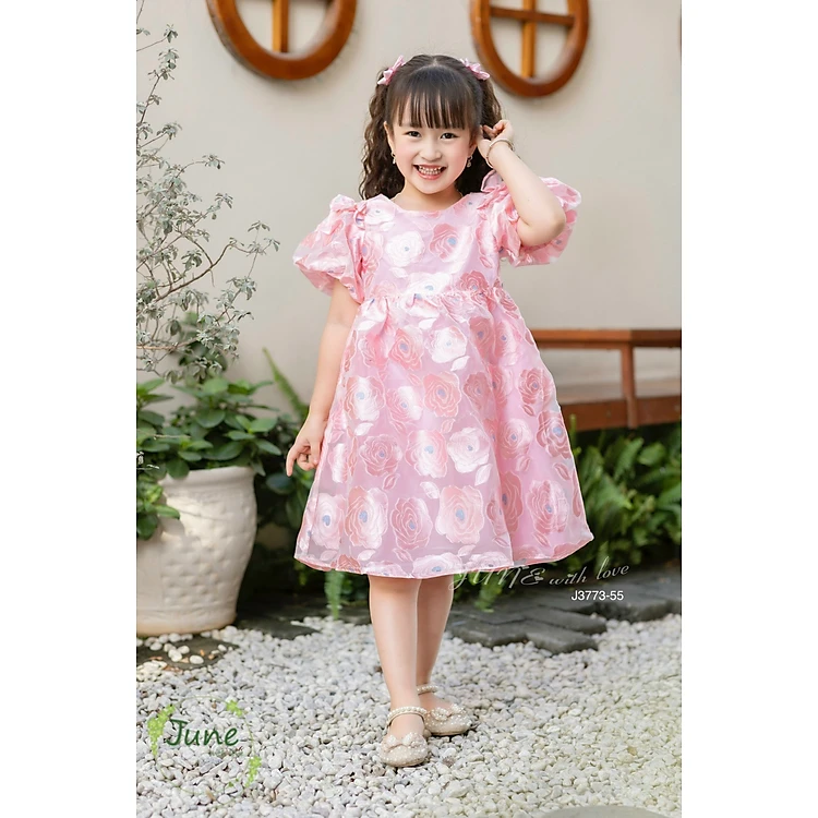 Đầm công chúa cho bé gái vân hoa hồng dự tiệc diện đi chơi đẹp size 10-40kg hàng thiết kế cao cấp