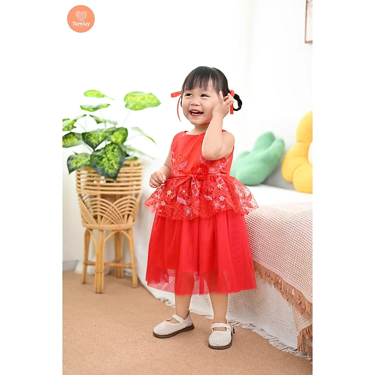 Đầm Công Chúa Tamiuy Ren Màu Trắng 2 Tầng, Đính Hoa Cao Cấp (1-10T)